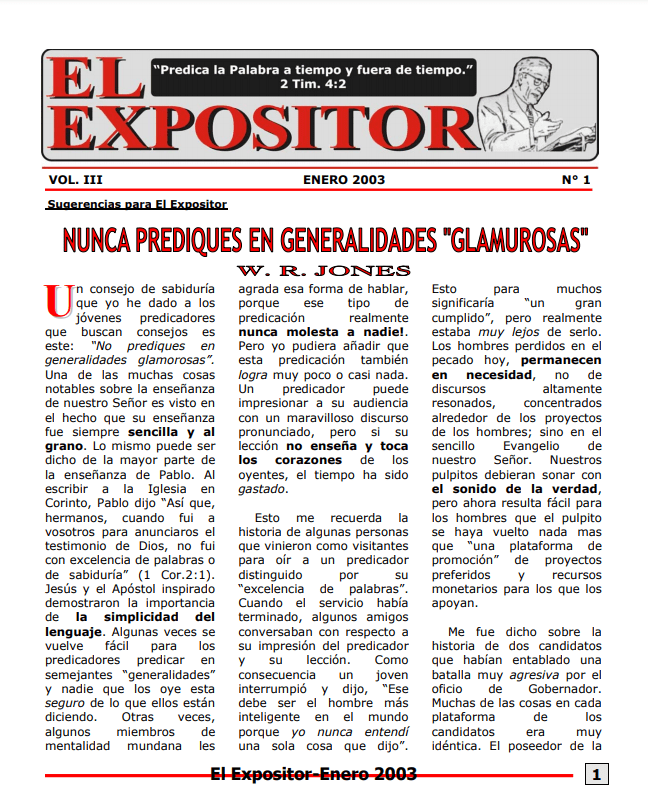 Esta edición de Enero 2003 incluye el artículo, “El Marido Ideal” escrito por el hermano Floyd Chappelear. Este artículo finaliza la edición especial de Diciembre de 2002 titulada: El Matrimonio como Dios lo Diseñó.