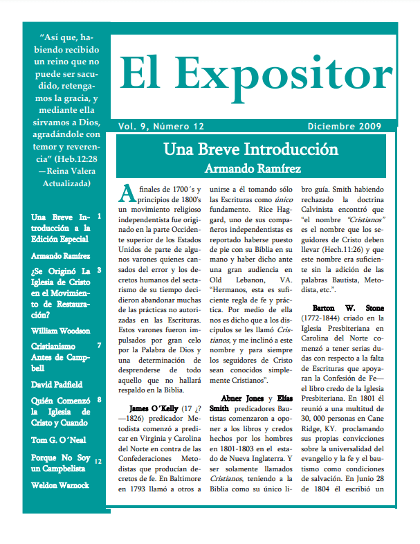 Al igual que muchos, escuchaba y leía de los movimientos de Restauración en los Estados Unidos encabezados por Tomás y Alejandro Campbell, Barton Stone, y otros personajes quienes habían decidido abandonar todo nombre, credos y rasgos denominacionales para ser llamados como el Nuevo Testamento llama y ser la Iglesia idéntica a como ésta era descrita y organizada en el documento inspirado. Mi dilema entonces era como armonizar lo que había leído años atrás en las Sagradas Escrituras y los hechos que estos varones habían emprendido a principios de 1800´s en varios estados de Norteamérica. Sin embargo, seguí creyendo que la Iglesia tal como Jesús la prometió era un reino indestructible “…edificaré mi iglesia; y las puertas del Hades no prevalecerán contra ella” (Mat.16:18). Comprendí que aunque la cizaña había “apocado” al trigo, el trigo nunca había dejado de existir en algunas partes remotas del mundo (Mat.13:24-30). Comprendí que aunque la Iglesia había sido lanzada al desierto a causa de sus feroces persecutores, (periodo comprendido a partir de los siglos III D. C. hasta la edad media) esta nunca había dejado de alabar a Dios en algunos lugares de nuestro ancho mundo (Apoc.12:1-8).
