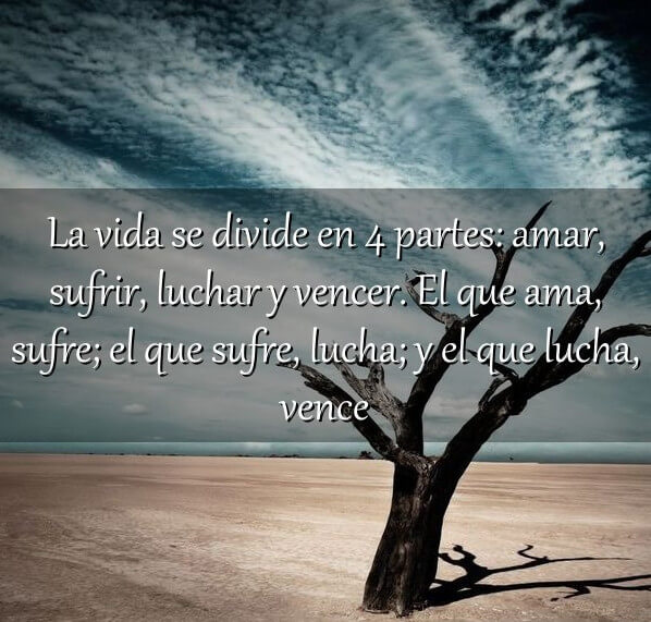 Este es un breve pero reflexivo pensamiento que no quisiera agregar mucho. Se explica así mismo y cualquier adulto que haya vivido un poco puede constatar que su vida ha transcurrido por estas cuatro etapas del crecimiento humano: Amar, Sufrir, Luchar y Vencer! Una etapa lleva a la otra: El que ama se volverá vulnerable al sufrimiento, al desencanto y a la decepción! Ya sea producido por las malas decisiones del hijo (a) hacia sus padres, de la esposo a su cónyuge o del amigo a su “íntimo” amigo.