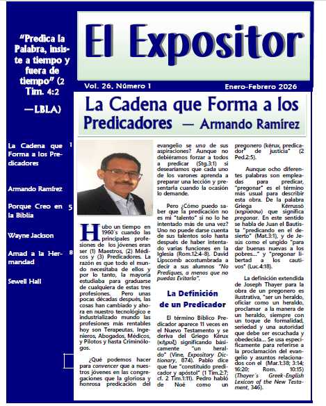 La primera edición de este 2026. Esta vez incluyó un artículo que fue impartido en estudios Biblicos para predicadores el año pasado (de Marzo a Mayo, 2025) a los hermanos jovenes y algunos de nuestra edad sobre la predicación en la Iglesia de Crtisto de la Colonia las Fuentes en Matamoros, Tamps.