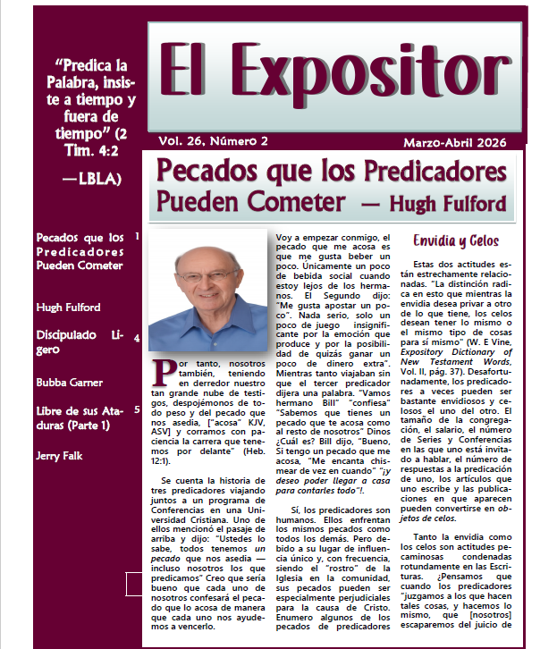 (1) Pecados que los Predicadores Pueden Cometer por Hugh Fulford. Se dirigue directamente a los varones que asumimos el pulpito. No es solamente impresindible dominar el arte de producir y exponer sermones, es crucial vivir lo que predicamos.